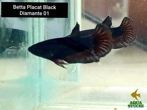 Muito procurado por aquaristas que buscam exclusividade, o Black Diamante Plakat se destaca principalmente pelo seu corpo escuro com reflexos metálicos azulados ou prateados que brilham conforme a incidência de luz. Esse efeito cria um visual luxuoso e diferenciado, sendo uma das variações mais apreciadas dentro das linhagens premium de Bettas.