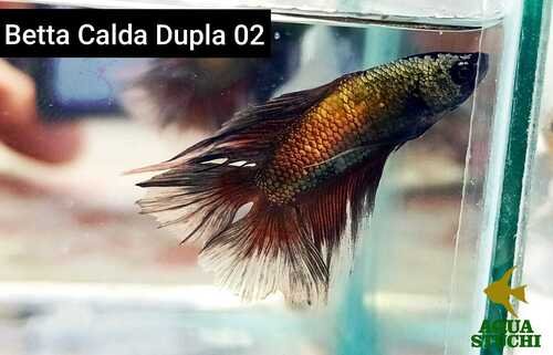 Quando adulto, o Betta Macho Cauda Dupla atinge cerca de 6 a 8 centímetros, sendo considerado um peixe de pequeno porte.