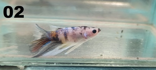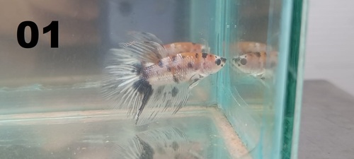 O Betta Macho Koi apresenta nadadeiras longas e bem desenvolvidas, que podem variar em formato dependendo da linhagem, incluindo variações como Halfmoon, Plakat ou outras formas ornamentais. O grande destaque dessa variedade é seu padrão de cores marmorizado, que lembra as carpas Koi utilizadas em lagos ornamentais.