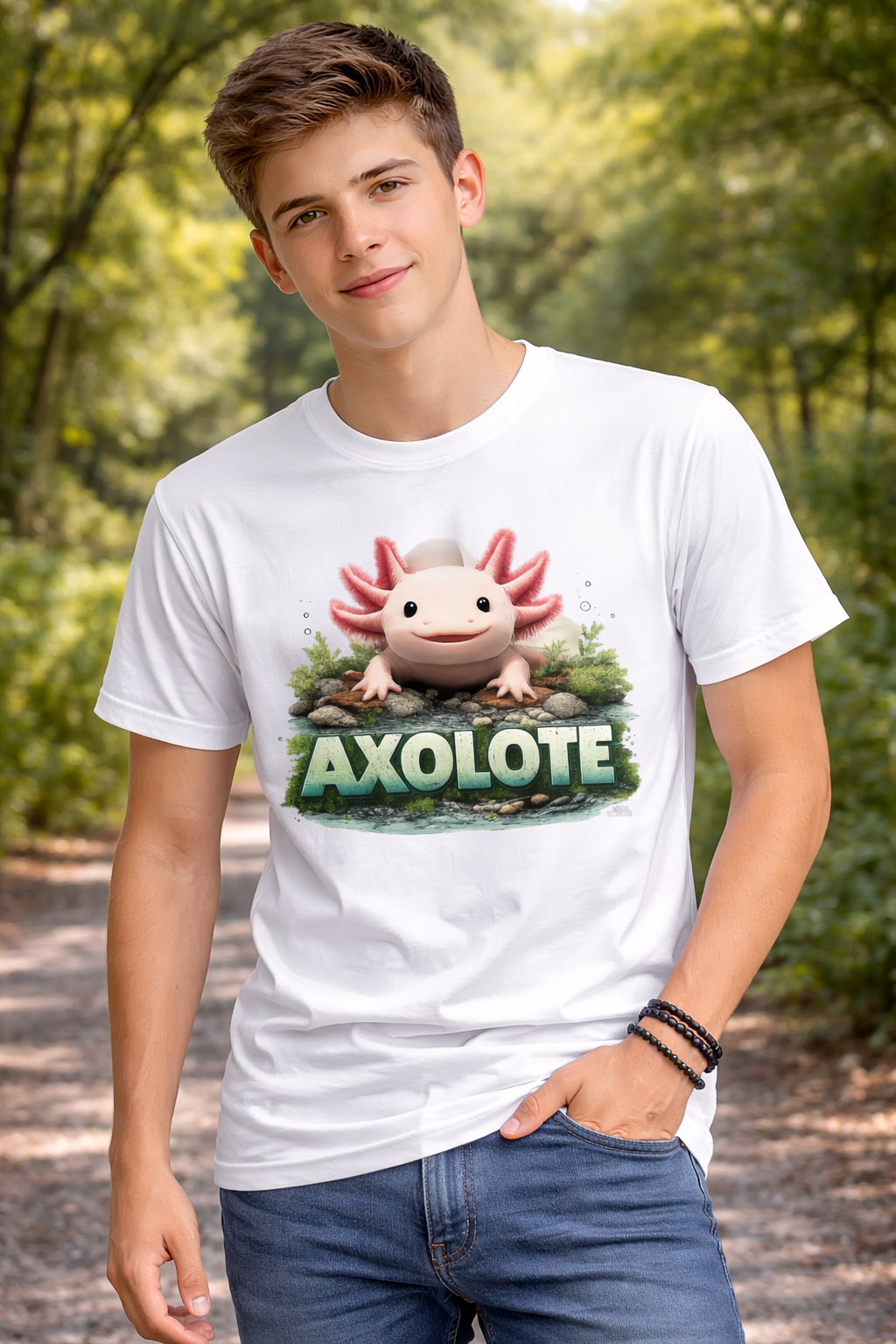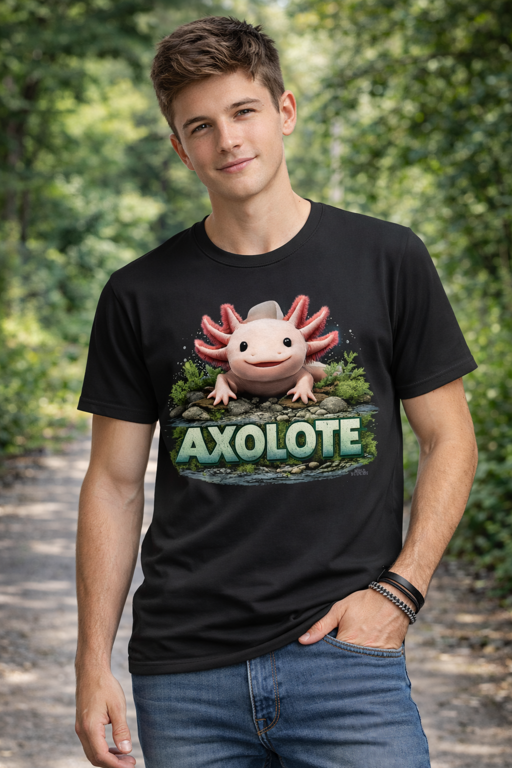 Camiseta masculina com estampa exclusiva de Axolote, ideal para quem gosta de animais exóticos, aquarismo, biologia e estilo casual moderno. Modelo confortável, versátil e perfeito para o dia a dia.