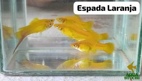 espada laranja à venda, xiphophorus hellerii laranja aquário, peixe espada laranja aquário ornamental, peixe vivíparo aquário comunitário, espada reprodução fácil aquário, peixe resistente iniciante aquário, espada laranja aquário plantado, Aqua Stuchi Peixes Ornamentais.