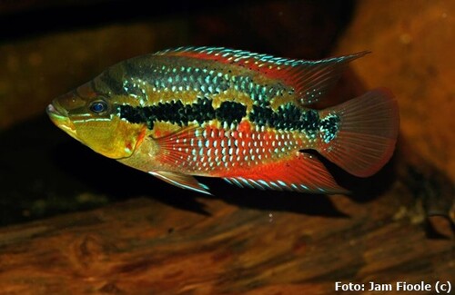 Reprodução: Ovíparo, produzem até 500 ovos adesivos em superfícies planas de rochas, raízes ou plantas, que eclodem em até três dias. Ambos pais guardam os alevinos até que estejam nadando livremente.